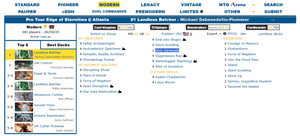Strix Serenade reached the #1 spot in the Atlanta Pro Tour in a Landless Belcher deck, and this month is seeing a ton of play in Jeskai Ephemerate decks. And, in Magic, success often breeds price spikes!