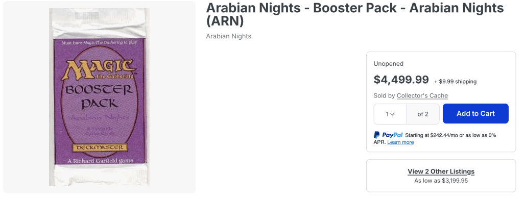 Collector Booster Boxes are no laughing matter price-wise, but most pale in comparison to a single pack of Arabian Nights.