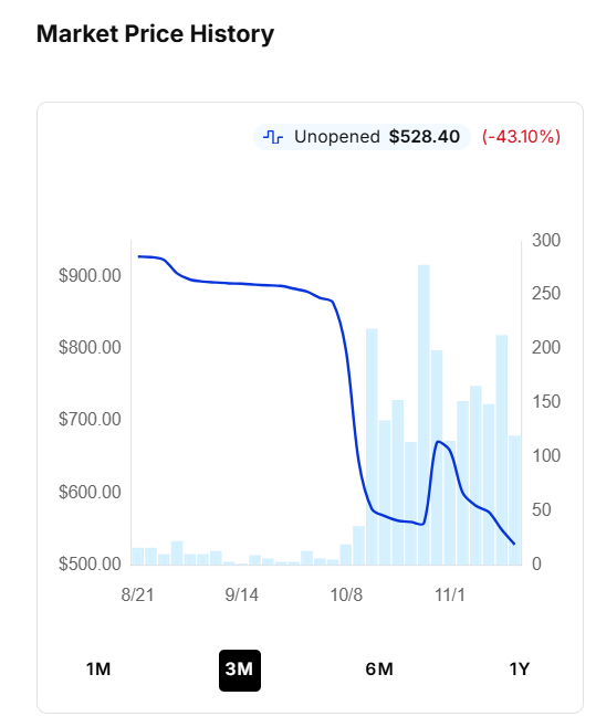 The move from ~$150 to ~$200 on November 4 lines up almost perfectly with two factors: the Dockside Extortionist mania we got two weeks ago, and the Bundle-exclusive Booster Fun treatments.