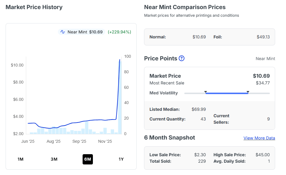 At the time of writing, near-mint copies are listed around $45 on TCGplayer, while lightly-played copies are around $35.