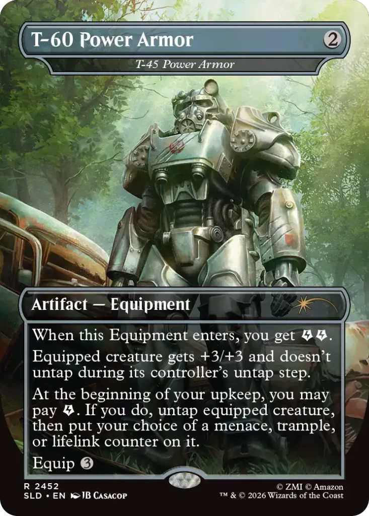 There's also this weird thing going on where some original Fallout cards are getting reskinned as Fallout cards? It's kind of funny with the T-45 Power Armor reprint, but also super annoying.