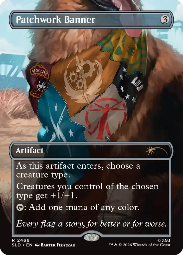 Here's the mandatory โwe're not really even tryingโ drop in the series. It became a bit of a joke last year that Secret Lair keeps pushing drops with some combination of Arcane Signet, Sol Ring, and Lightning Greaves, and it seems they're committed to the bit. This is basically โYoshimaru + other cardsโ, though maybe Dogmeat's cool enough that people will want this drop just to show the good boy off.