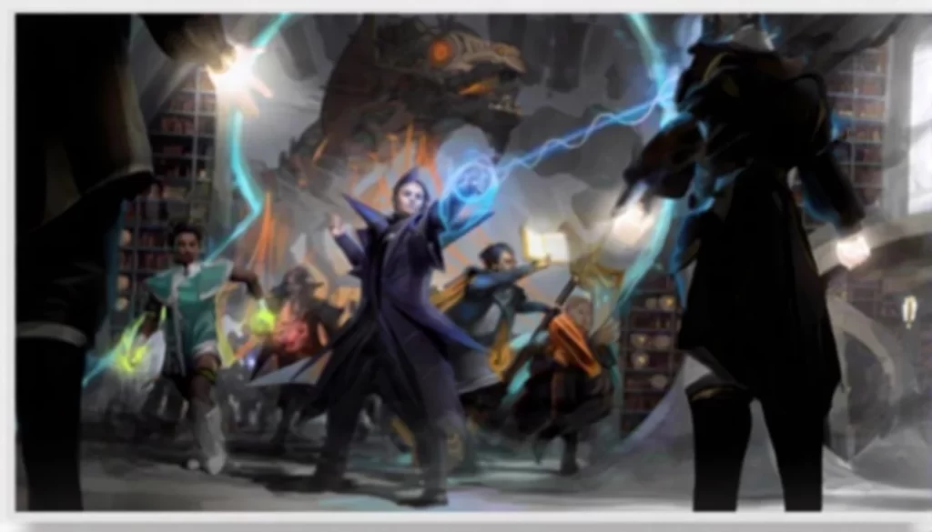 What we know about Hexhaven and Reality Fracture comes form a survey conducted by Wizards of the Coast in November 2024; luckily, Redditor u/Electronic-Voice-613 saved screenshots of concept art and text from the survey! That includes the above image, which may represent students at Hexhaven, or a battle at the end of Secrets of Strixhaven.