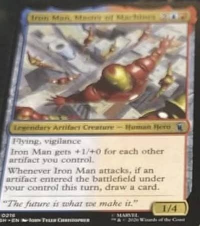 As for the rest of the cards, there are no new mechanics. However, they still hint at some interesting themes for Limited. Iron Man, Master of Machines and Thor Odinson both look to be signpost uncommons, which means they are great indicators for what each of their respective color pairs will care about in Limited. For blue red, it looks like artifacts again. It's something we see fairly often, as a theme for blue red, last appearing in Teenage Mutant Ninja Turtles.