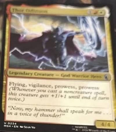 As for white red, it's a bit harder to tell what kind of deck Thor is supporting; it could be aggro, or it could be all in on a prowess spellslinger style deck, which is interesting as white red doesn't usually get to do that. Again, we can't say anything for certain right now, and we'll know more when we know more, but this is a promising peek at the set.