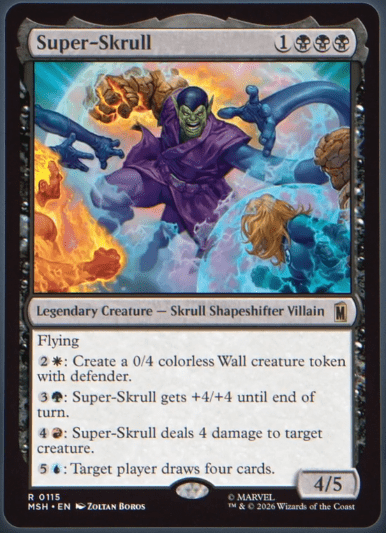 It wouldn't be a Universes Beyond set without some 5-color legend. Super-Skrull may not end up being the only one in the set, but it's here to let you jam every Marvel hero or villain in one deck without having to resort to Cosmic Spider-Man. Note that new Skrull creature type, too.
