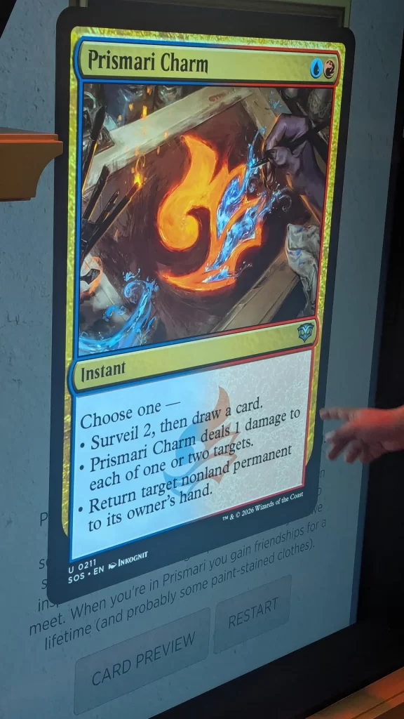 Prismari Charm is easily the strongest charm previewed. The two interactive modes cover each other; anything the burn can’t kill, the bounce handles. And Curate is far from useless. That’s three looks at an answer, plus three cards in the graveyard. It has no bad modes.