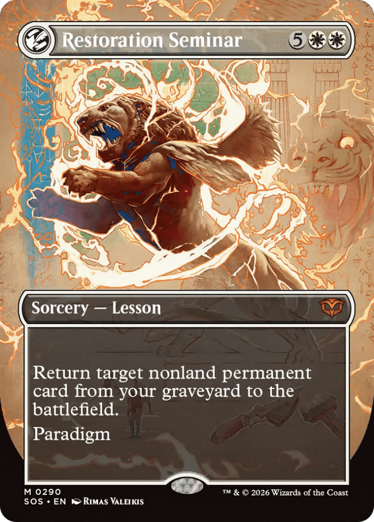 Strixhaven students are surely taking notes while wandering across Arcavios and even Omenpaths. There are six rare and six mythics total with the Borderless Field Notes art treatment, and almost all of these will see some Constructed play, at least in the casual realm. You can find them in nonfoil and foil treatments in Play Boosters and Collector Boosters.