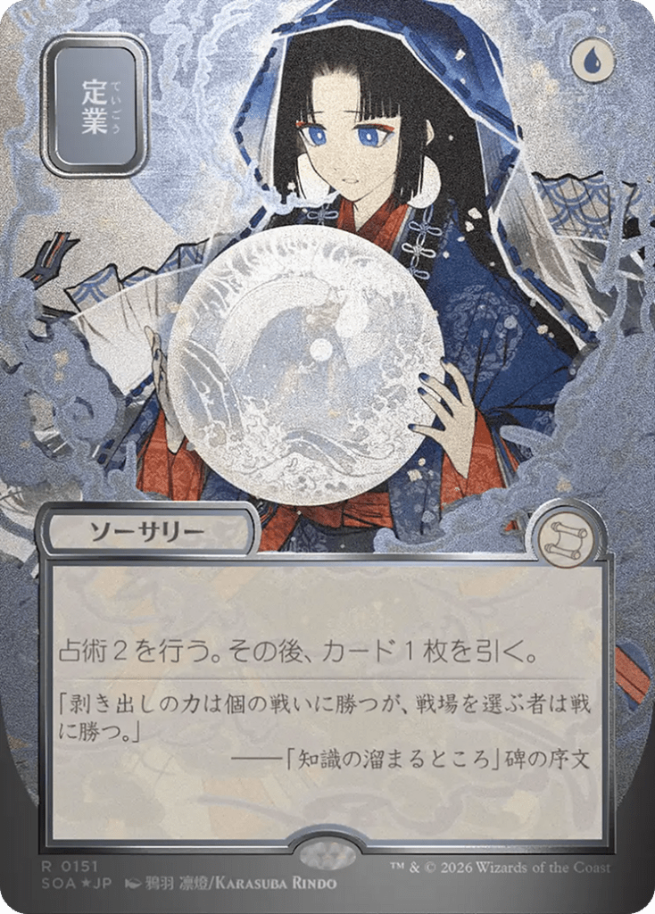 Silver Scroll Foil is a special card treatment applied to the Japanese Mystic Archive cards. You can find these only in Collector Boosters. All Mystical Archive cards can have a silver scroll foil treatment. These are rare, and fewer than 20% of Collector Boosters you open will have one of these, so about one in five.