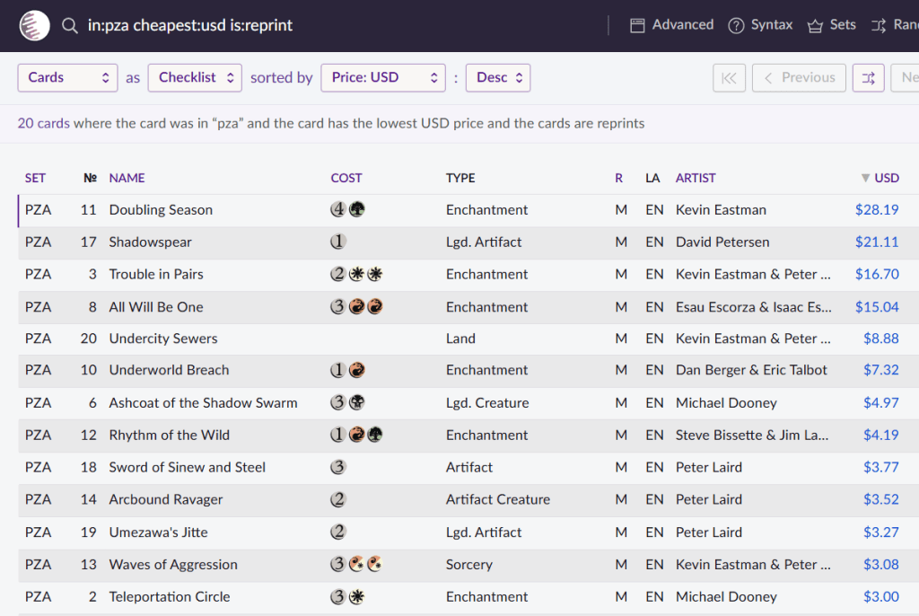 Of the twelve most expensive reprints included in the PZA bonus sheet (aka the Source Material bonus sheet), in all cases the cheapest version is the PZA version.