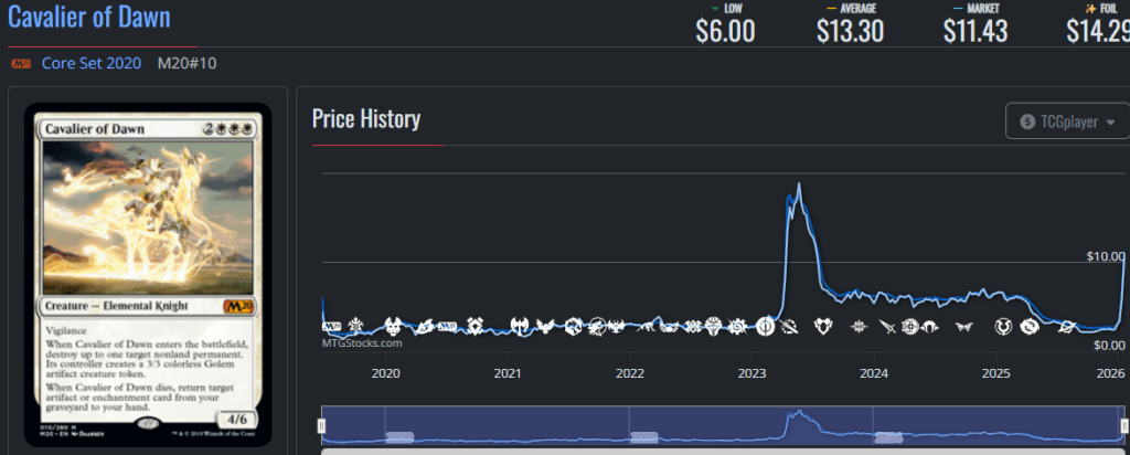 While the ECL precons arenโt dominate the spikes this week like previous weeks, theyโre still making waves. Cavalier of Dawn and Cavalier of Flame has climbed considerably, no doubt in response to the popularity of Dance of the Elements and Ashling, the Limitless.