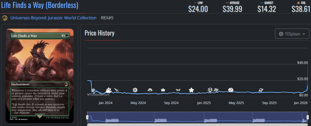 Life Finds a Way from the Jurassic World set has seen a substainal price boost, jumping to an average of $39 dollars this week.