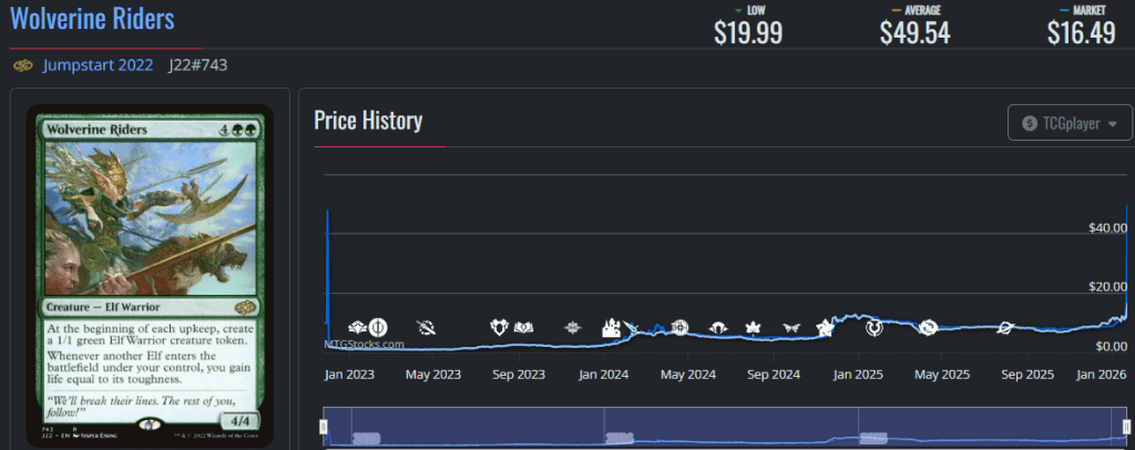 The next price spike driven by Maralenโs explosive popularity is Wolverine Riders, a power elf token generator that makes four tokens a turn cycle.