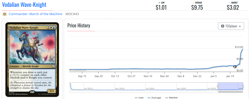 โฆ and two out of three Sygg, Wanderwine Wisdom decks are now including Vodalian Wave-Knight in the mix. Which, in turn, has roughly tripled Vodalian Wave-Knightโs price since last week, pushing it almost to $10.