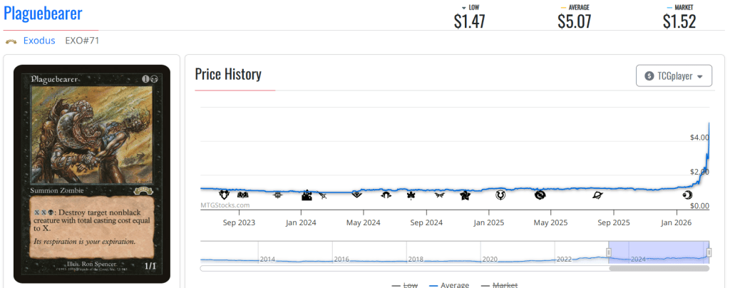 โฆ and all thanks to Premodern, and in particular Recur โ Survival decks where Plaguebearer is a key sideboard tech. No discrepancies between different printings here, on grounds that the Exodus original is the only version available!