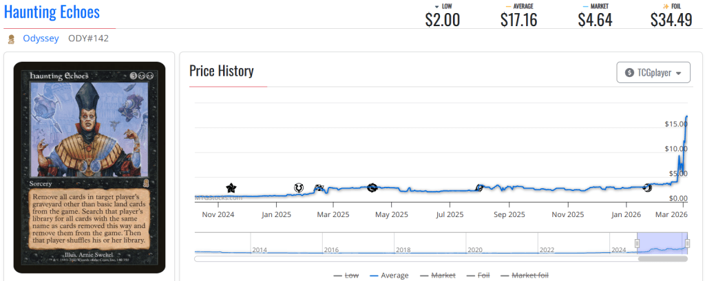 โฆ yeah, Premodern has the newest Universes Beyond MTG set beat when it comes to impacting the MTG card market. Haunting Echoes is yet another oldie sorcery that more than doubled in price (in this case jumping from a little below $8 to well over $17 in the span of seven days), and in this case continued the rally we saw last weekโฆ
