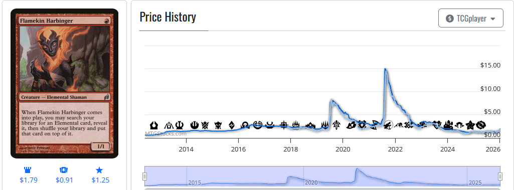 The price bump is no surprise considering the Harbinger didnโt get a reprint in the precon, though itโs not the only elemental to miss a reprint in the deck.
