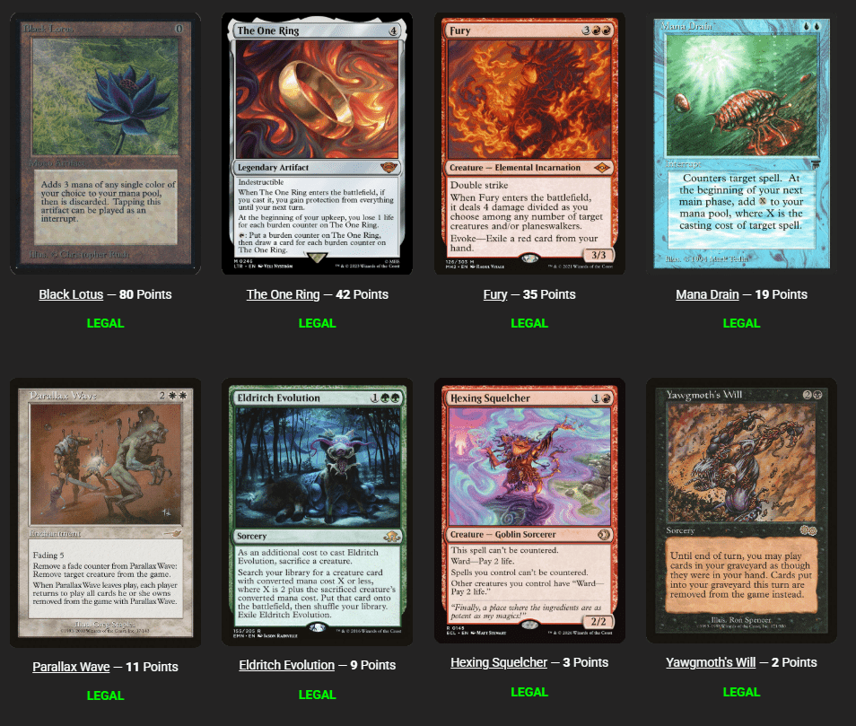 On the other hand, though, it remains to be seen if MTGO will be willing to include AeonShift in their client, given the past history. MTGO seems the perfect environment for a deckbuilding system based on points. And. as shown by Duel Commander back in 2024, and Premodern more recently, MTGO can really help a player-run format grow.