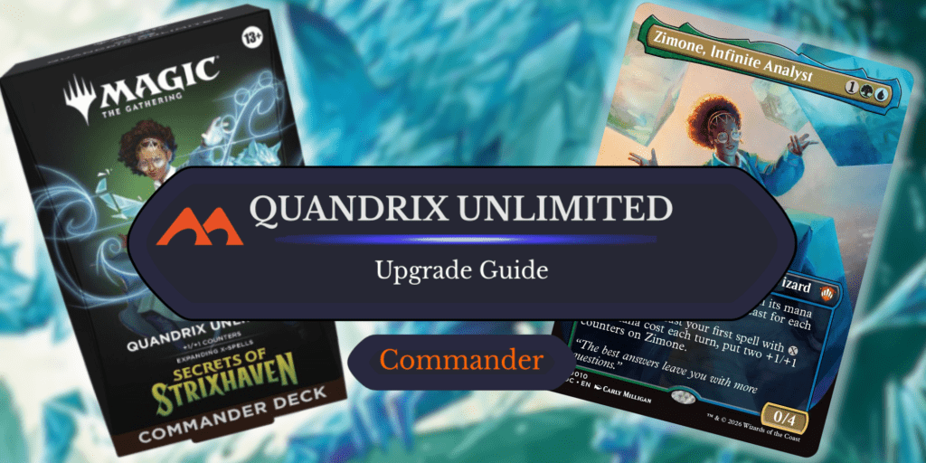 Personally, I look forward to messing around with Quandrix Unlimited in the future. Itโs definitely the Secrets of Strixhaven precon Iโm most interested in. Which precon do you want? How would you upgrade the list? Let me know in the comments below, and check out Draftsimโs YouTube channel, The Daily Upkeep, for more SOS coverage.