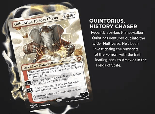 โฆ which not only directly mentions the Fomori, but specifically says that the Fomori trail that Quintorius is following has led the planeswalker right to Arcavios, the Magic plane where Strixhaven is located.