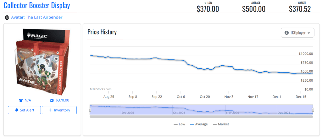 โ€ฆ but, from its record opening at close to $1000, Avatar had also dropped to nearly half as much before releasing, and many of the current listings on TCGplayer offer it for less than $400.