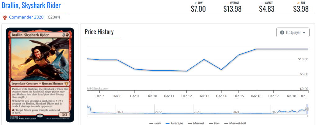 Unlike Galadhrim Ambush, though, there doesn't seem to be a clear, recent reason for such a spike; Brallin, Skyshark Rider may soon resume its bumpy ways and crash down.